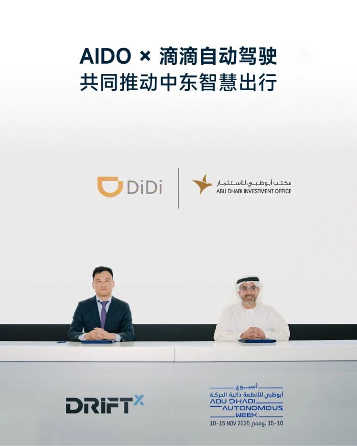 阿布扎比投资办公室微信公众号11月26日消息:阿布扎比投资办公室(ADIO)宣布与滴滴自动驾驶达成战略合作,将共同推动智能与自动驾驶汽车产业集群(SAVI)的深化发展,进一步巩固阿布扎比在下一代出行科技与创新领域的区域领先地位。